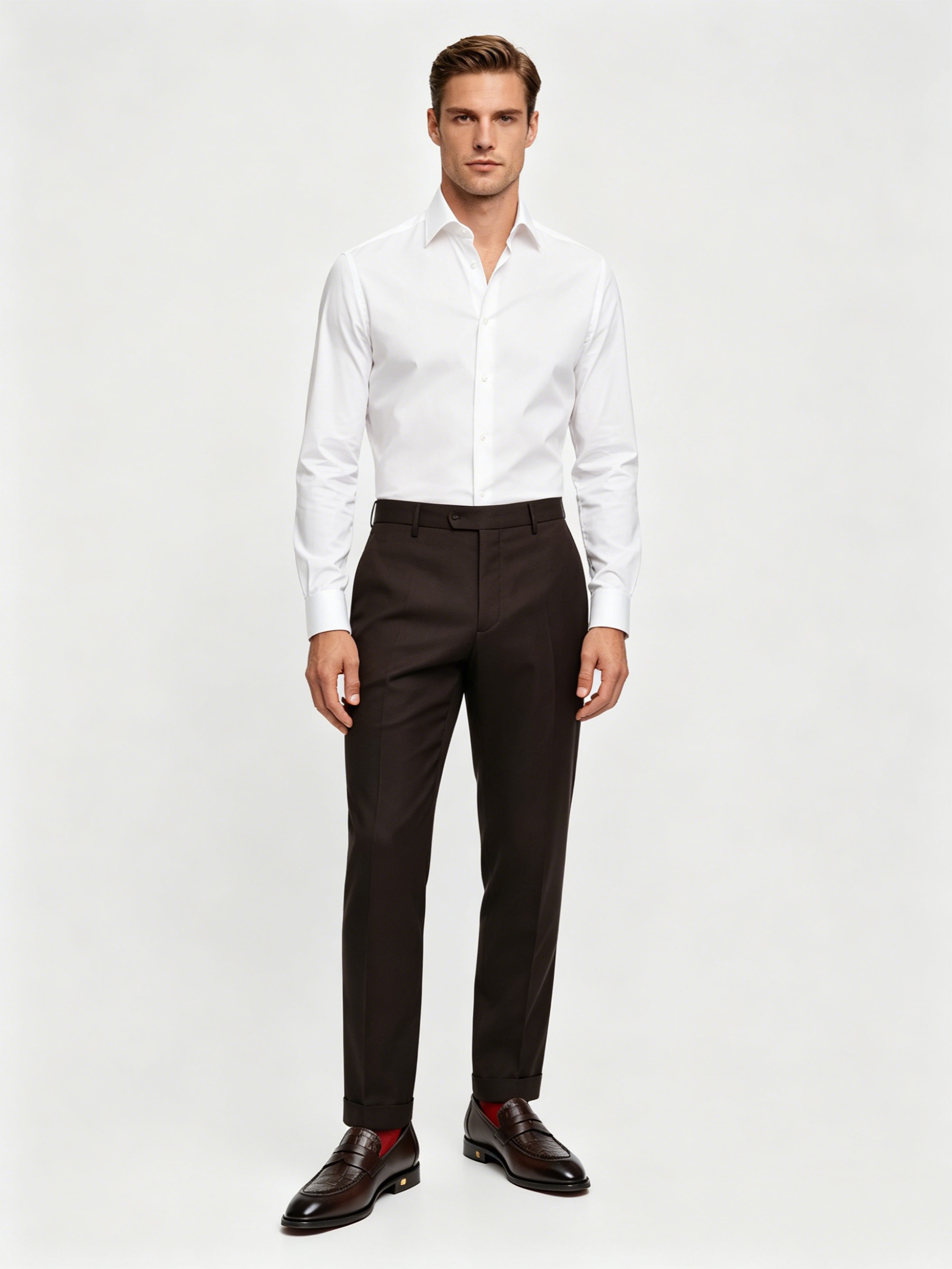 Pair with tailored suits or formal trousers.